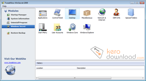 TweakNow WinSecrets 2009 não trabalha apenas no registro, mas em diversas funções vitais do seu sistema. Ele é capaz de modificar arquivos de diretórios, rede e internet, área de trabalho, painel de controle, menu iniciar, contas de usuário, Windows Explorer e muito mais.